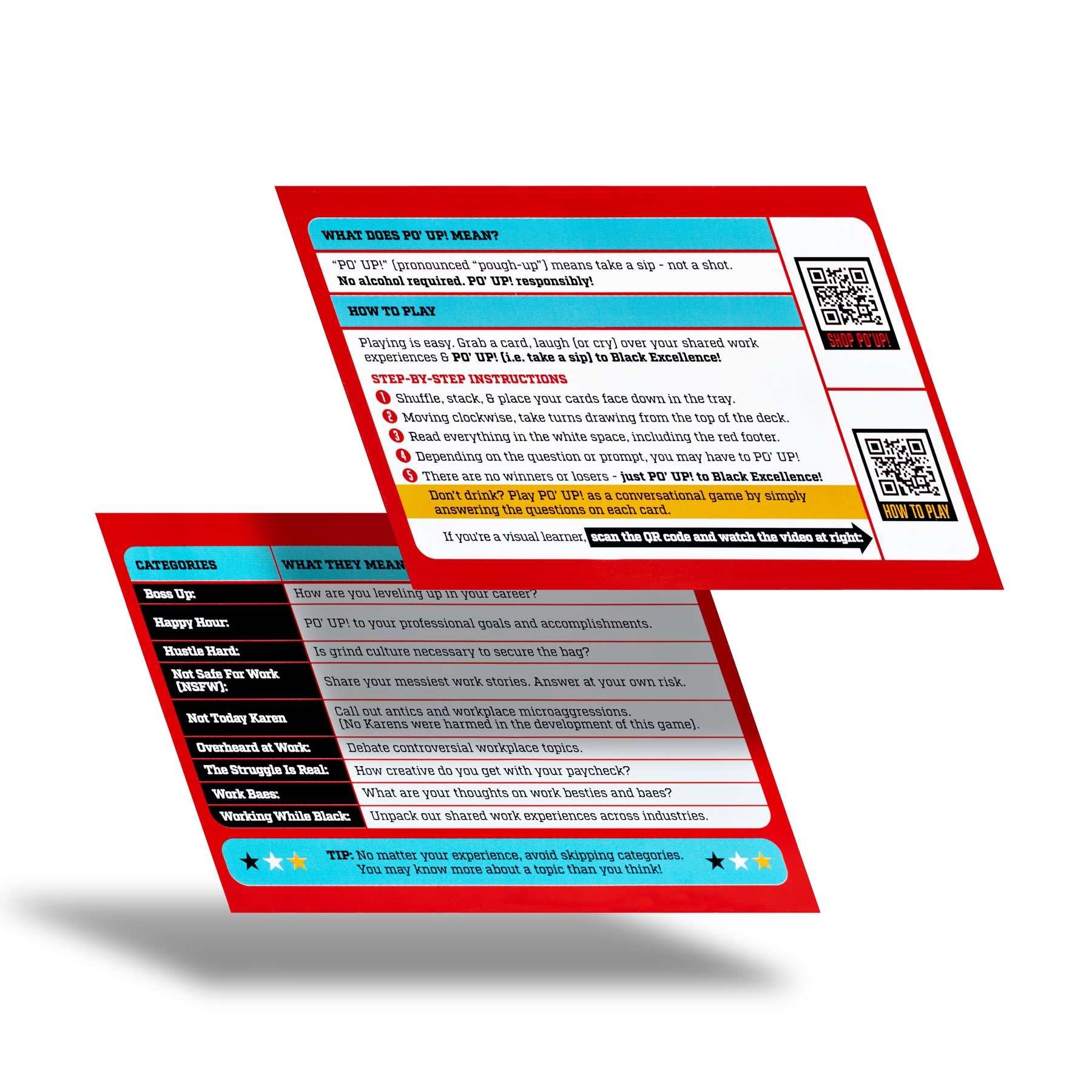 Playing is easy. Grab a card, laugh (or cry) over your shared work experiences & PO’ UP! (i.e. take a sip) to Black Excellence!