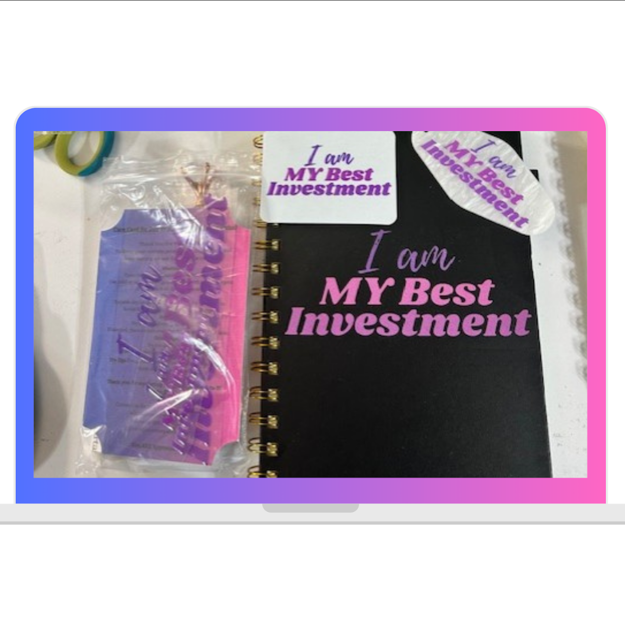 Celebrate self-worth and growth with the “I Am MY Best Investment” bundle. Includes a motivational journal, bedazzled pen, matching keychain, decorative magnet and UV decal stickers. Designed to inspire focus, self-care and confidence—perfect for students, professionals or anyone embracing their journey.