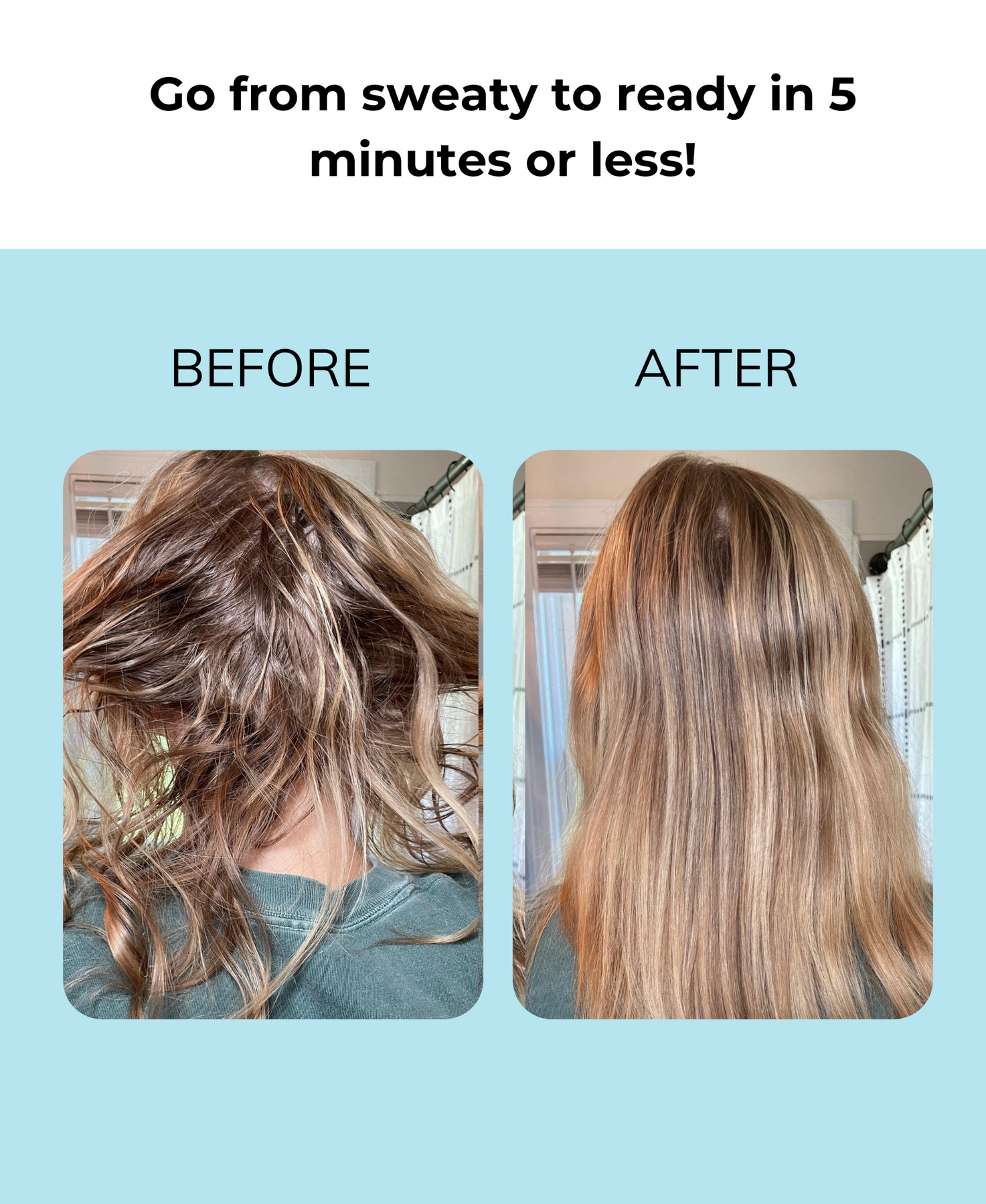 It also protects your hair from the mineral damage caused by sweat. Just spray on wet, damp, or dry hair for instant softness and shine. Safe for color, keratin, and chemically treated hair, plus extensions. Dermatologist tested, made in the USA, and loved by stylists and athletes alike. Now you can go from sweaty to sleek in seconds.